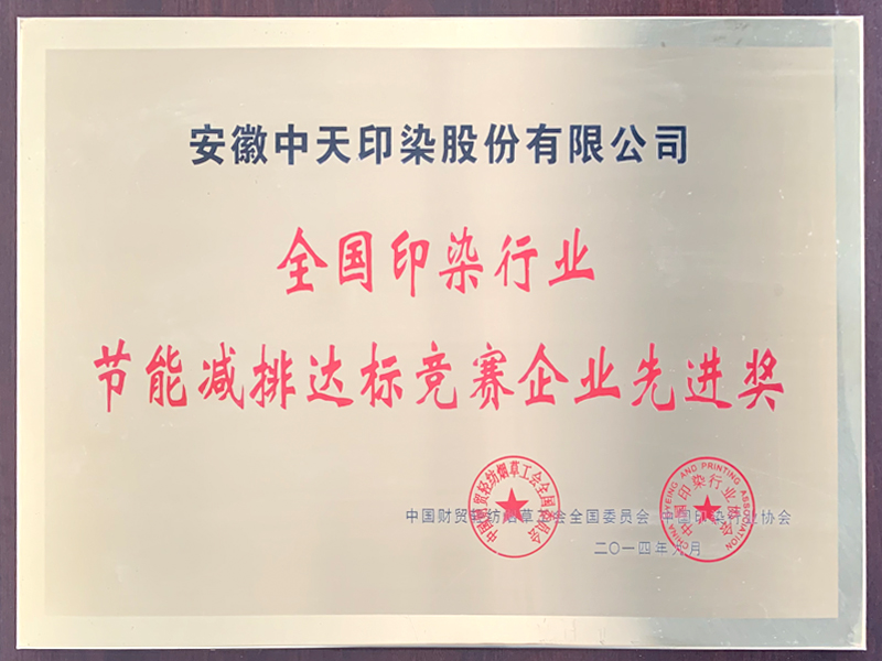全國印染行業節能減排達標競賽企業先進獎